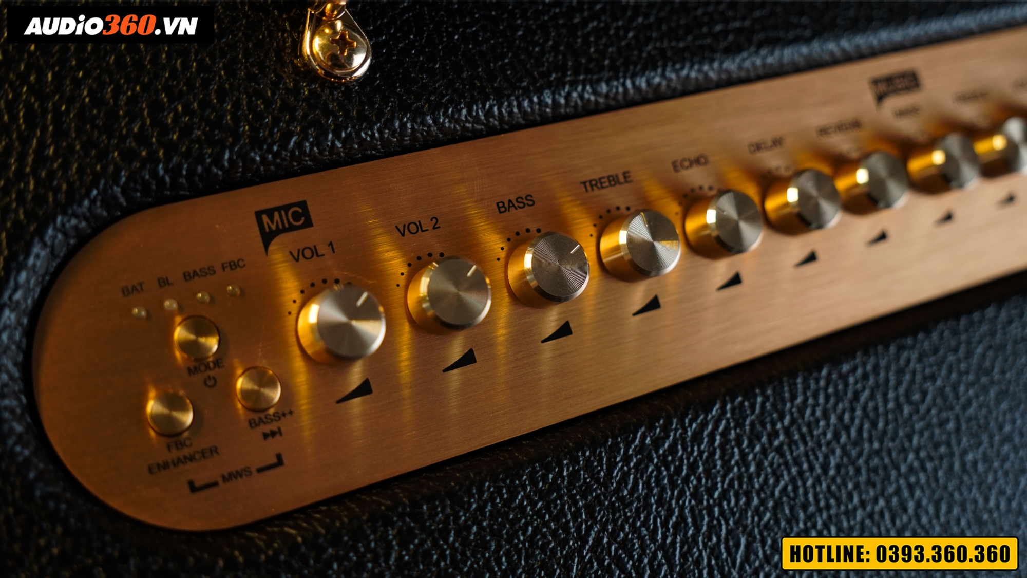 Acoustic 3 Compact được trang bị bảng điều khiển vật lý bố trí khoa học, dễ làm quen. Vang số chỉnh cơ cho phép tinh chỉnh Echo, Delay, Reverb riêng biệt, kết hợp cùng các nút Volume, Bass, Treble cho micro và nhạc.