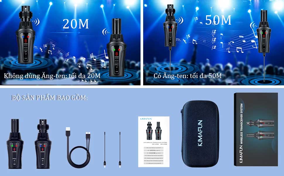Với khoảng cách làm việc không dây từ 20-50m, sản phẩm cho khả năng truyền tín hiệu mạnh mẽ, hạn chế tối đa hiện tượng nhiễu sóng. Công nghệ chống hú tích hợp giúp âm thanh trong trẻo, rõ ràng, phù hợp cho không gian vừa và lớn.