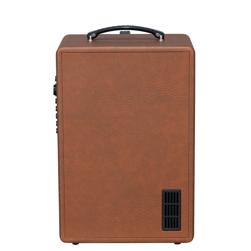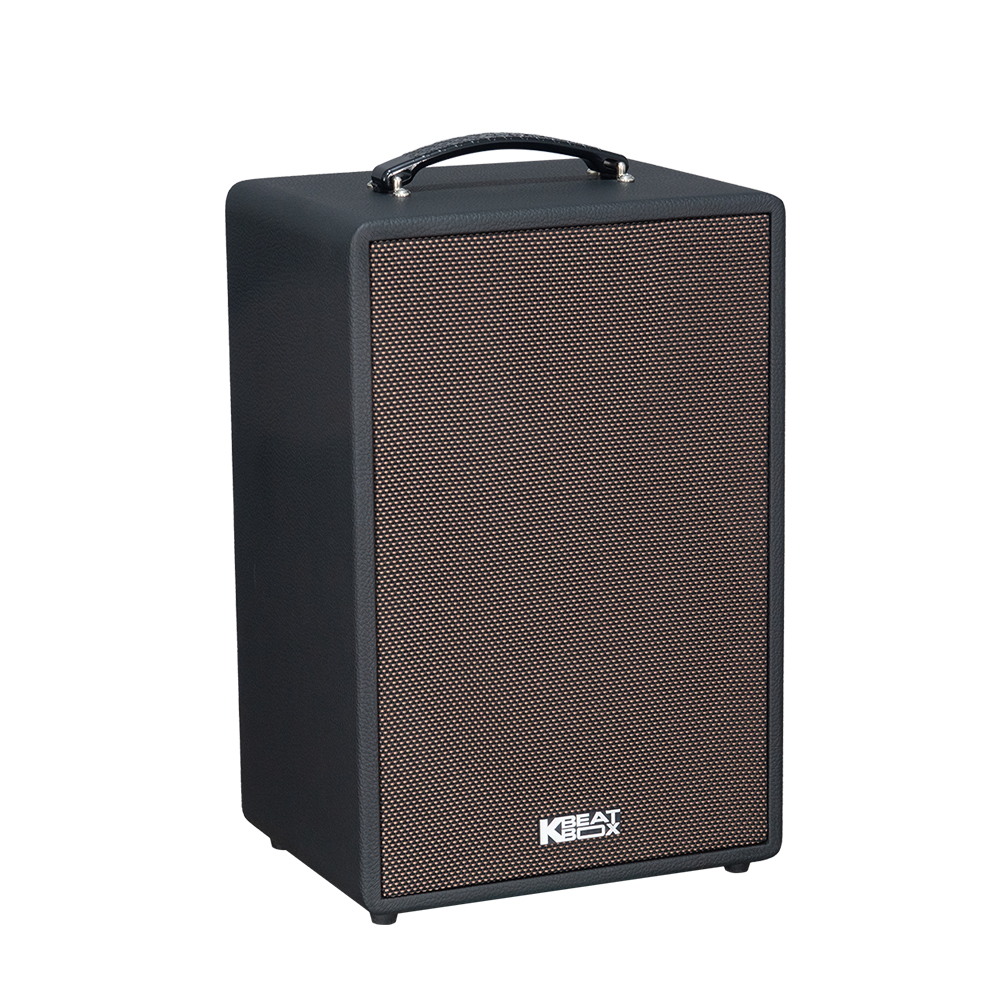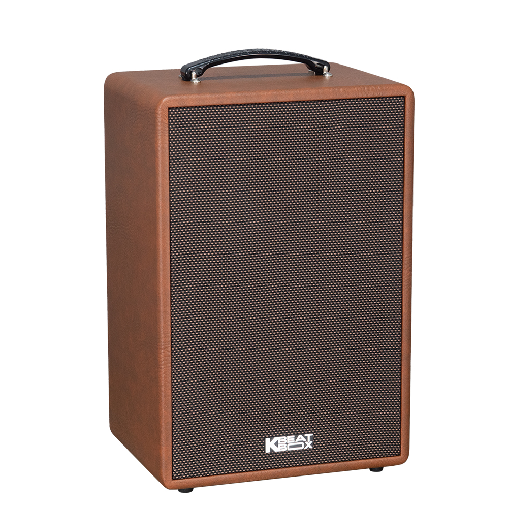 Acnos Symphony gây ấn tượng với thiết kế thùng gỗ bọc da sang trọng, mang phong cách hiện đại nhưng vẫn đậm chất cổ điển. Logo KBeatBox lớn ở mặt trước tạo điểm nhấn đặc trưng của thương hiệu. Loa có kích thước 310 x 470 x 235 mm và trọng lượng chỉ 11.6kg, dễ dàng bố trí hoặc mang theo khi di chuyển nhờ quai xách tiện dụng. Sản phẩm có hai màu Nâu – Đen phù hợp với nhiều không gian nội thất.