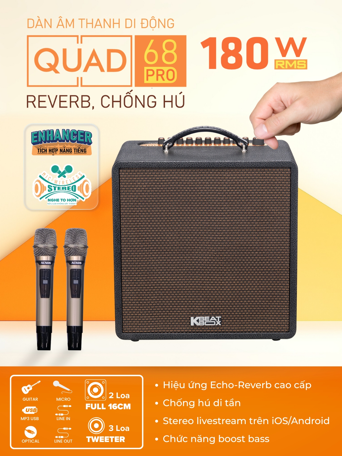 Loa Acnos Symphony tích hợp livestream stereo kỹ thuật số qua cổng USB, tương thích điện thoại iOS & Android. Phù hợp cho livestream bán hàng, thu âm karaoke, hát cover, podcast với chất lượng âm thanh tách kênh rõ ràng và chuyên nghiệp hơn nhiều so với thu âm analog.