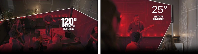 Nhờ tích hợp công nghệ ống dẫn sóng độc quyền, Evolve 70 có góc phủ âm rộng 120° ngang x 25° dọc, đảm bảo âm thanh lan tỏa đồng đều trong không gian lớn. Công nghệ xử lý FIR (Finite Impulse Response) đảm bảo dải tần số tuyến tính và căn chỉnh pha chính xác, giúp âm thanh luôn rõ ràng và mượt mà ở mọi vị trí khán giả.