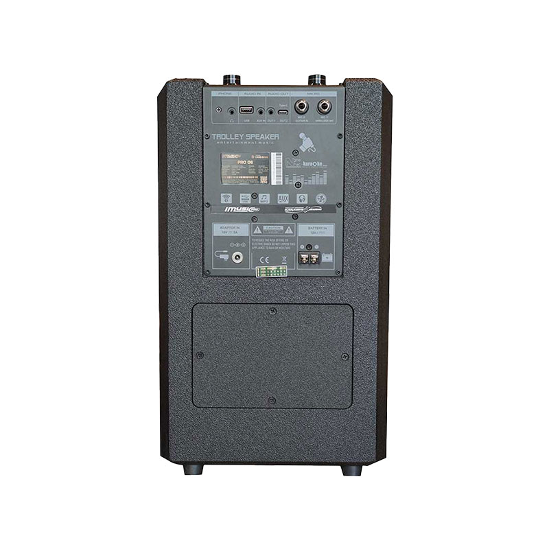 Với kích thước 19.5 x 55 x 48cm và trọng lượng chỉ 15.9kg, loa iMusic Pro 06 dễ dàng mang đi bất cứ đâu. Thùng loa bằng gỗ sơn gai đen vừa bền, vừa sang trọng, phù hợp cho mọi không gian và phong cách sử dụng. Loa di động iMusic Pro 06 là lựa chọn lý tưởng cho party, sự kiện ngoài trời, dạy nhảy hay biểu diễn DJ.