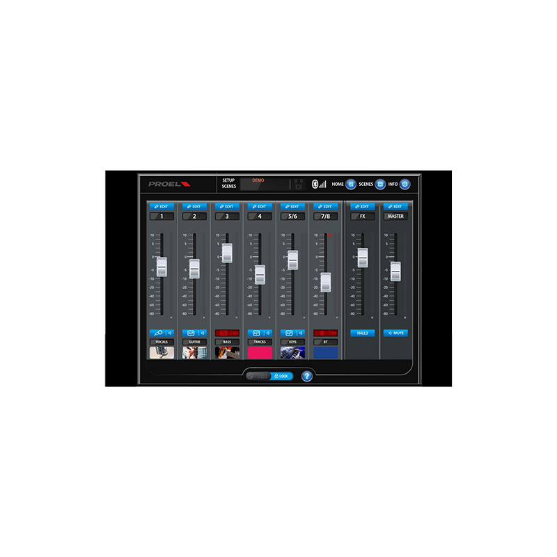 Mixer: 8 kênh digital (4 kênh MIC/LINE/INSTRUMENT selectable + 2 kênh LINE stereo + Bluetooth)