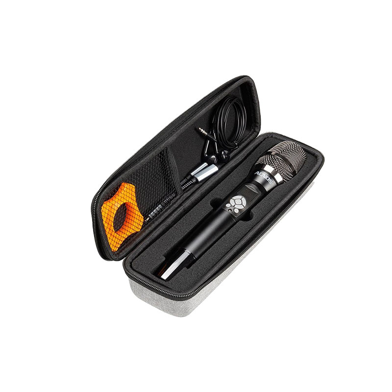 Acnos MiCar 3 Live có kiểu dáng sang trọng với tông màu đen nhám kết hợp thân nhôm cao cấp, mang lại cảm giác cầm chắc tay và bền bỉ. Kích thước chỉ 97 × 71 × 293 mm và trọng lượng 0.5 kg, micro nhỏ gọn vừa vặn trong lòng bàn tay, dễ dàng mang theo trên xe hơi hoặc trong những chuyến đi xa. Trên thân micro được bố trí màn hình LED hiển thị thông tin tần số, mức pin và chế độ hoạt động, giúp người dùng dễ dàng thao tác trong mọi điều kiện ánh sáng.
